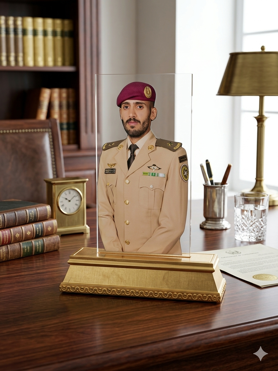 • مقاس مثالي: 15×22 سم، يتناسب مع المكاتب ورفوف التكريم.