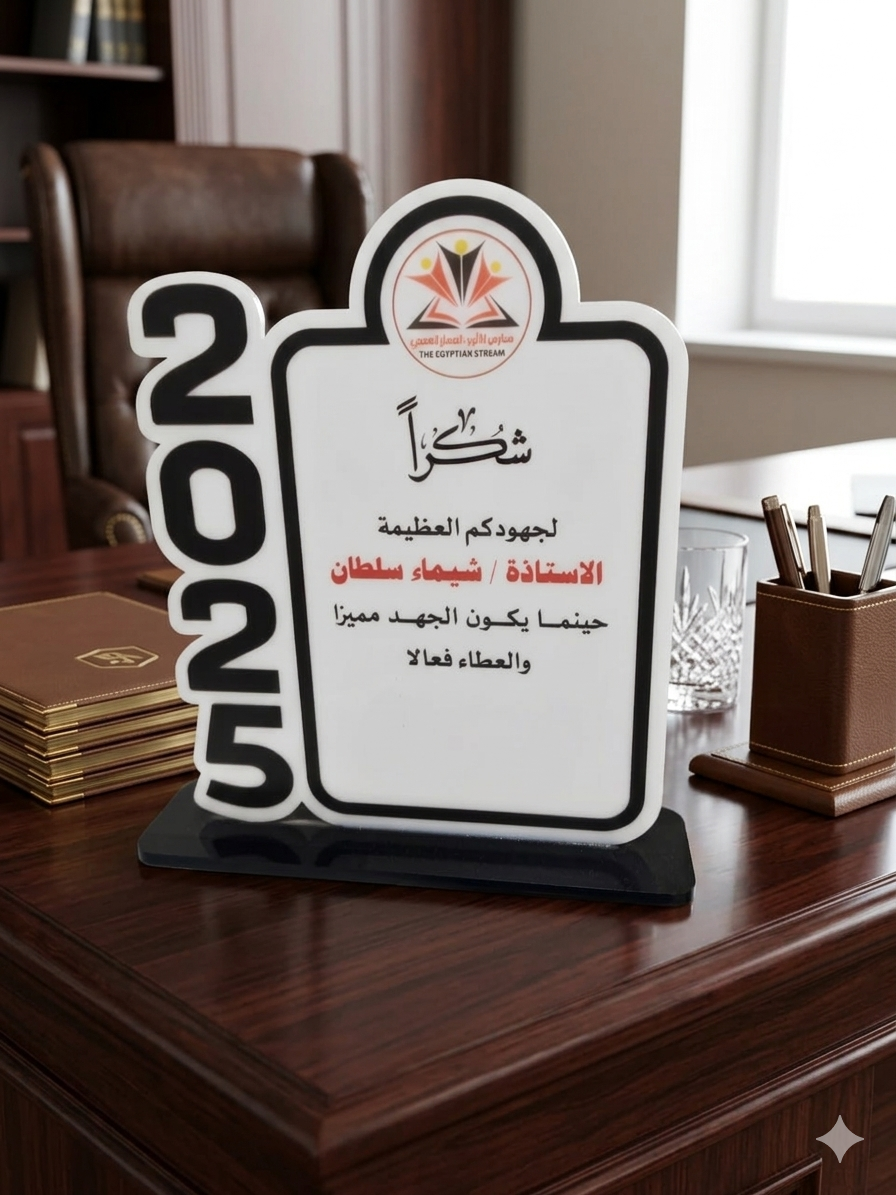 عن المنتج: درع تكريمي يجمع بين متانة الأكريليك وفخامة المظهر. يتميز بوزن خفيف ونقاء فائق، مما يجعله الخيار الأمثل للمناسبات التعليمية والشركات.