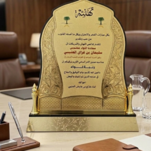 تصميم عصري وأنيق: يتميز الدرع بتصميم عصري وأنيق يتناسب مع مختلف الأذواق والديكورات، مما يجعله قطعة فنية تُزين أي مكتب أو رف.