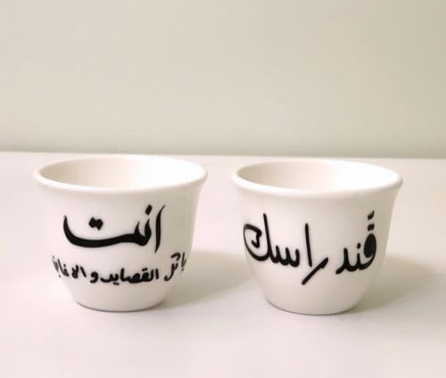 اجعل لحظات القهوة أكثر حميمية مع فناجيننا المطبوعة خصيصاً لك. سواء كنت ترغب في تخليد اسم غالي، أو إضافة عبارة تُلهم صباحك، نحن نحول الفنجان العادي إلى قطعة فنية تفيض بالمشاعر.