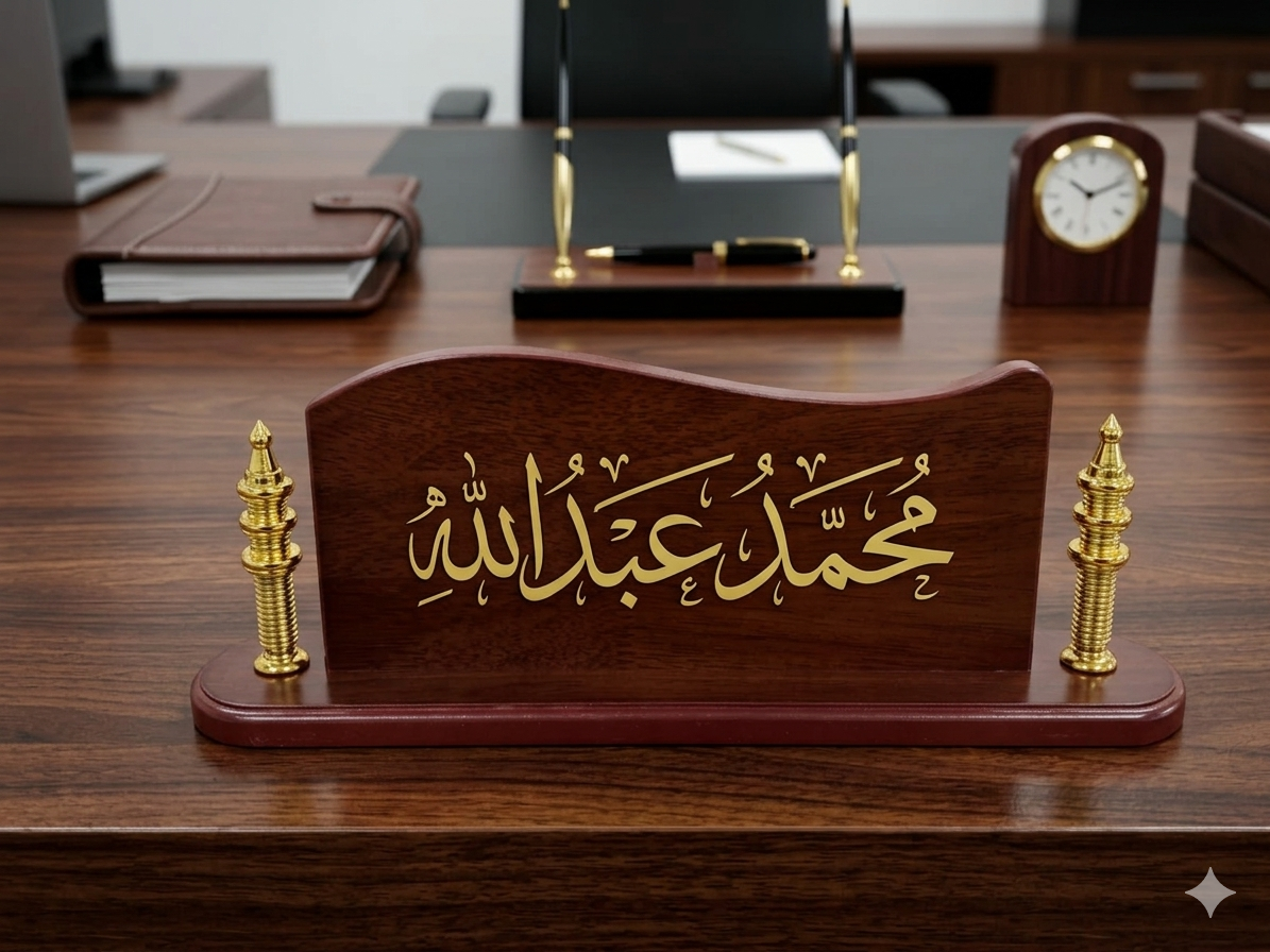 أضف لمسة من الهيبة والوقار لمكتبك مع لوحة الاسم المكتبية الفاخرة المصنوعة من أجود أنواع الخشب الطبيعي. صُممت هذه القطعة الفنية لتكون أكثر من مجرد لوحة اسم؛ إنها تعبير عن الهوية والاحترافية.