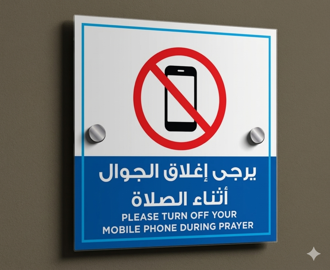 لوحة “الرجاء اغلاق الجوال اثناء الصلاة ” أكرليك – تصميم عصري بلمسة احترافية