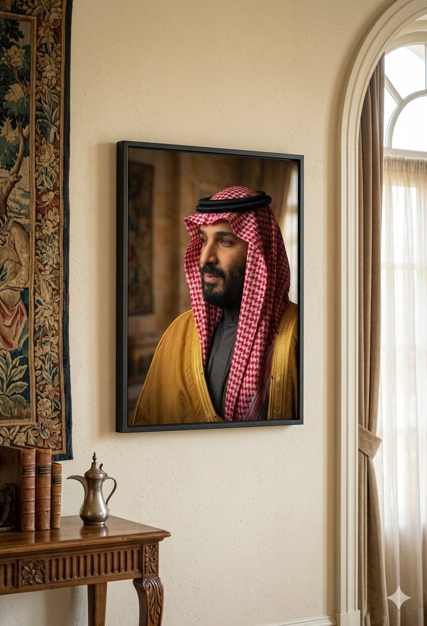 عزز هيبة مكتبك ومساحتك الخاصة مع لوحة ولي العهد الأمير محمد بن سلمان – حفظه الله . قطعة فنية تجسد الولاء والانتماء، مصممة وفق أعلى المعايير البروتوكولية لتناسب المكاتب الفاخرة والجهات الرسمية.