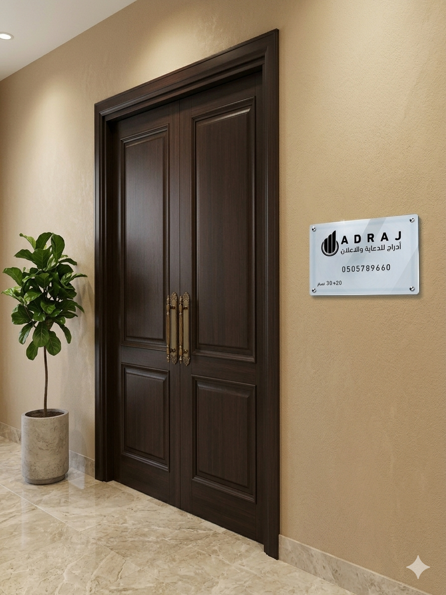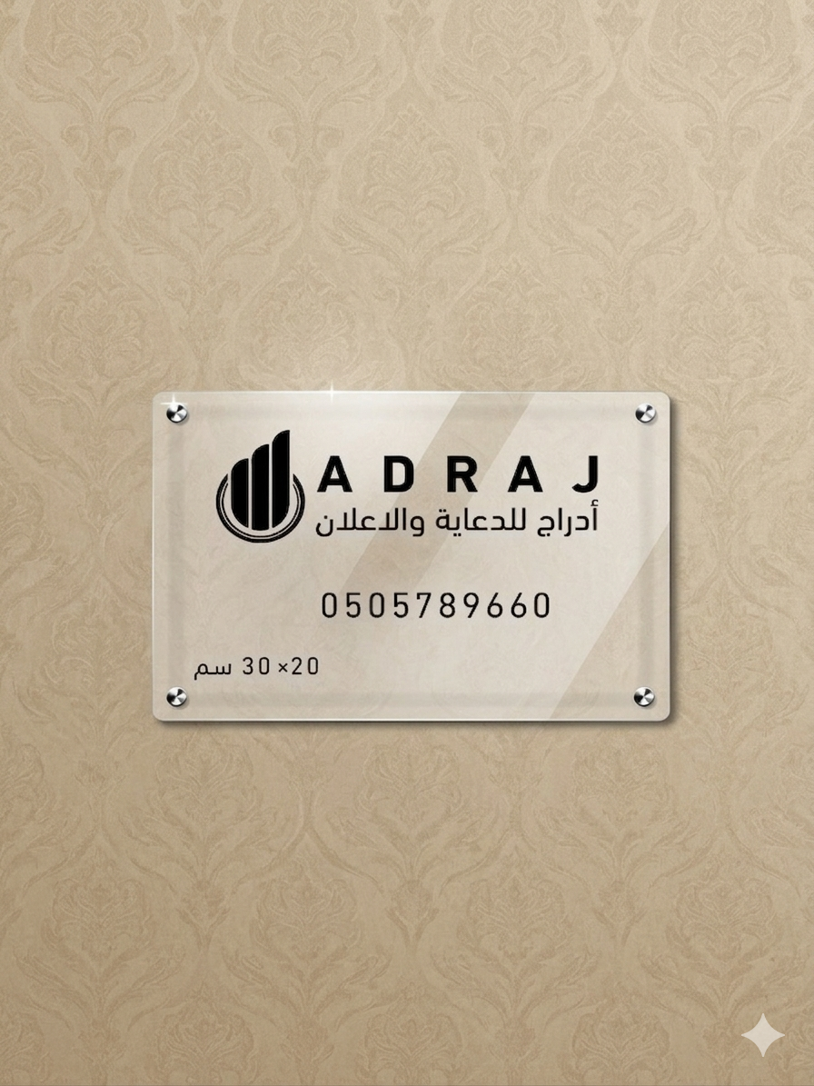 اجعل هويتك البصرية تتحدث عنك! نقدم لك لوحة الأكريليك الشفافة المصممة بأسلوب “المودرن” البسيط، والتي تضفي طابعاً من الاحترافية والشفافية على مكاتب الخدمات، الشركات، أو حتى المراكز التقنية.