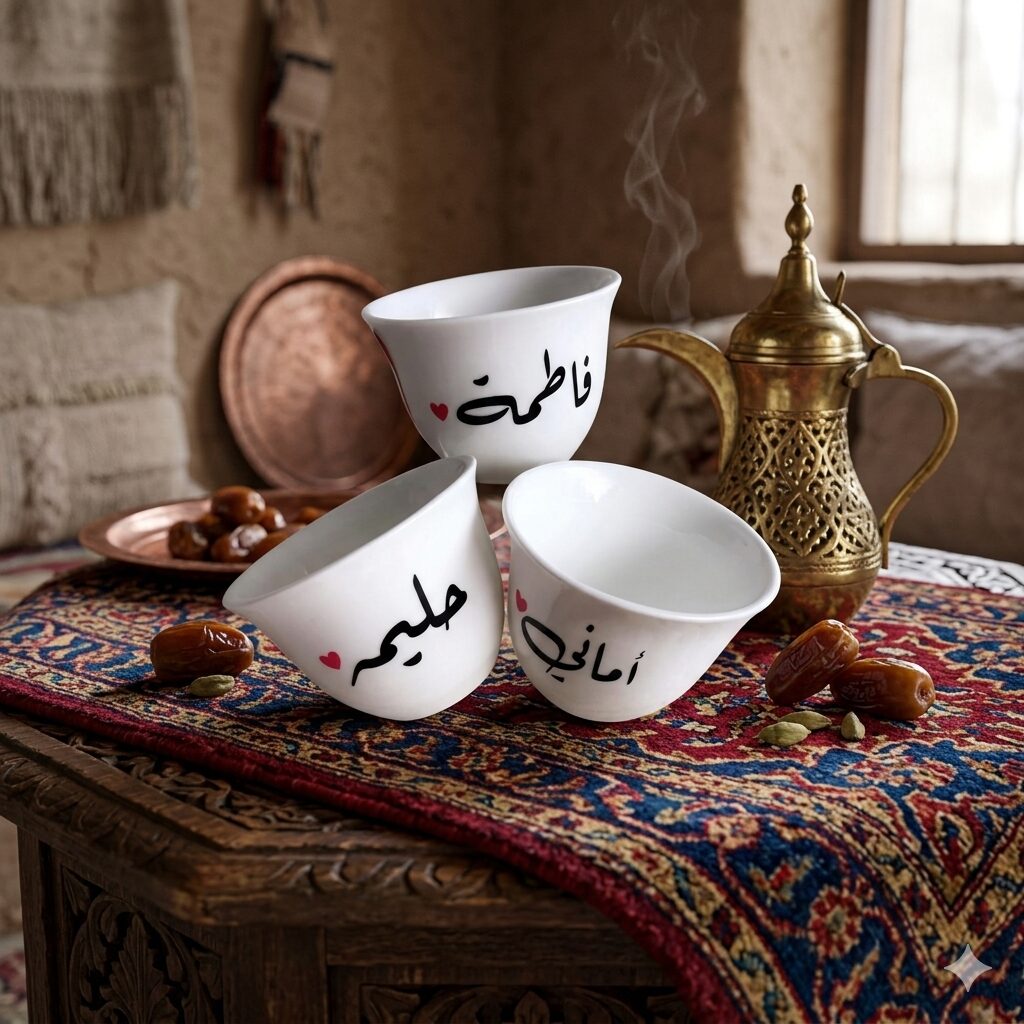 اجعل لحظات القهوة أكثر حميمية مع فناجيننا المطبوعة خصيصاً لك. سواء كنت ترغب في تخليد اسم غالي، أو إضافة عبارة تُلهم صباحك، نحن نحول الفنجان العادي إلى قطعة فنية تفيض بالمشاعر.