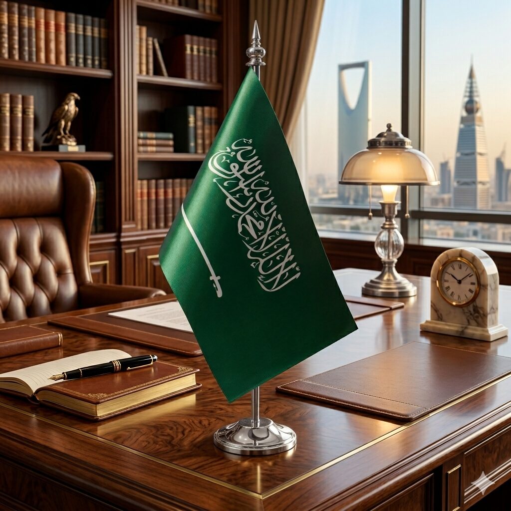 الوسوم: "أعلام بروتوكولية"., "علم السعودية تطريز", "علم مكتب فاخر", هدايا مكتبية وطنية